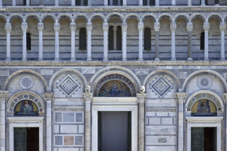 白と黒の縞模様の大理石は、ピサ大聖堂を象徴する特徴の一つです。