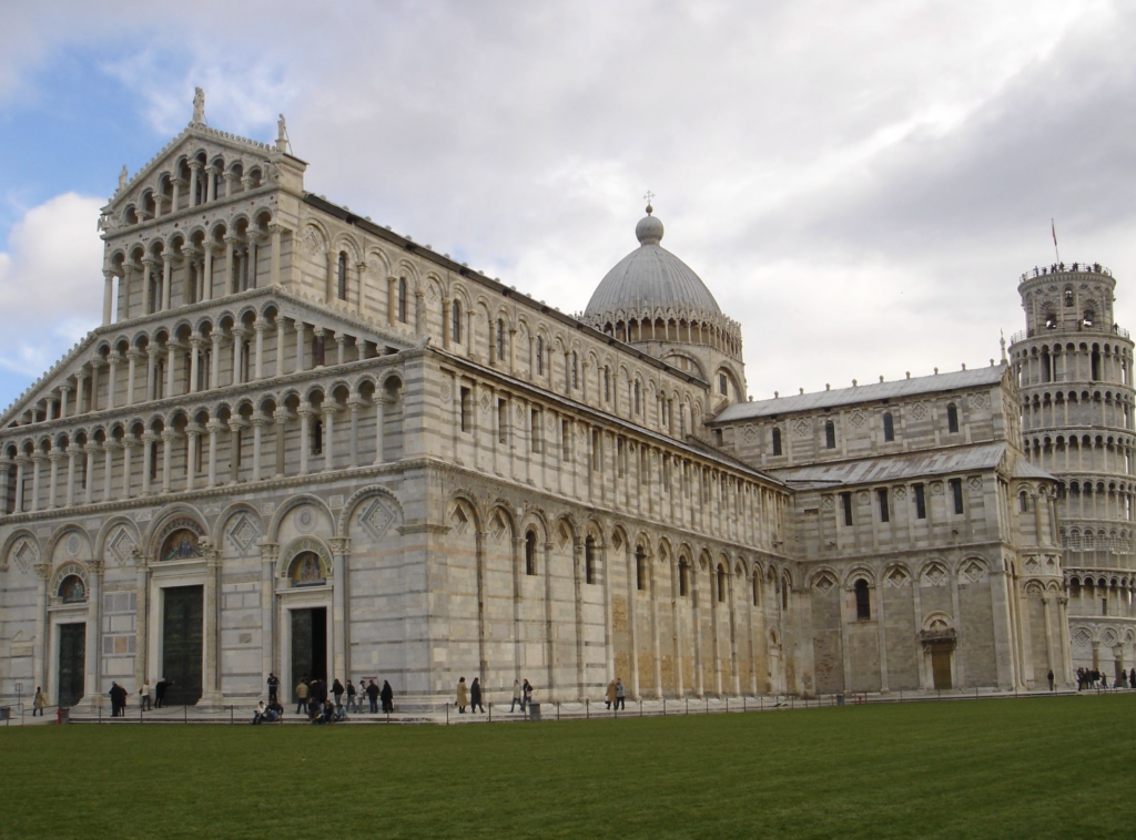 斜塔の傾きを補うように設計された大聖堂は、大理石の耐久性を示す好例であり、数世紀の地震や爆撃を生き延び、現在も世界遺産として人々を魅了している。