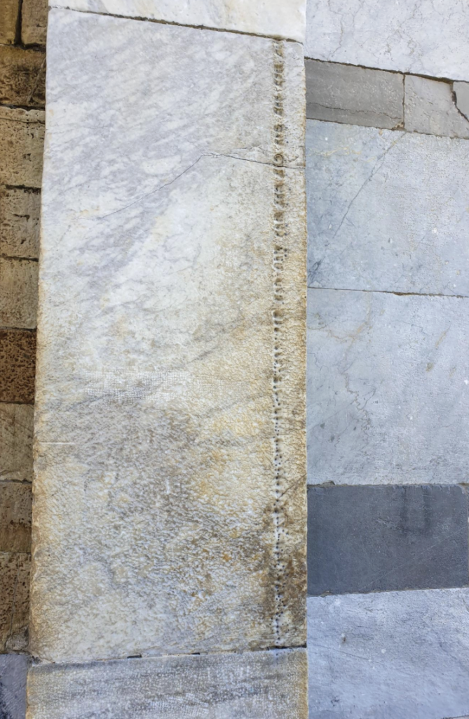 ピサ大聖堂には古代ローマの石材が再利用されている部分もあります。